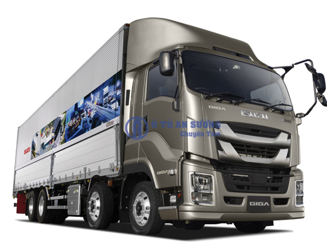 Xe tải Isuzu 4 chân động cơ 380Hp, cabin Giga đời mới, 6 xi lanh, tải trọng 17.9 tấn, tổng tải trọng 30 tấn , chiều dài tổng thể 12m, chiều ngang tổng thể 2.5 mét, , kích thước thùng dài 9.5 mét, kích thước chiều cao lọt lòng 2.150 mét, rộng lọt lòng 2.360m.